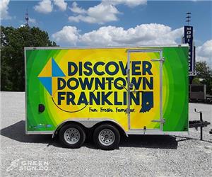 Check out this wrap that our team completed this week for Discover Downtown Franklin! The Discover Downtown Franklin team reached out needing a custom wrap for their organization's trailer! Our account rep. for their area met with them to discuss their goals and ideas for the wrap! Measurements and photos were also taken of the trailer to ensure the wrap fit perfectly! All this information was brought back to our design team who used it to create custom design layouts for the Discover Downtown Franklin team to review! Once they approved a design, our production team began preparing the digitally printed graphics! This wrap is part of our GSC 100 Series Custom Digitally Printed Vehicle & Trailer Graphics! After the graphics were complete, our graphics department installed them on the trailer!