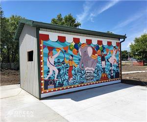 For this project, Green Signs designed, fabricated, and installed a series of GSC 300 Series digitally printed panels. Each panel was created with vibrant, detailed graphics that highlight Peru’s circus themes, adding a fun and colorful touch to the community.