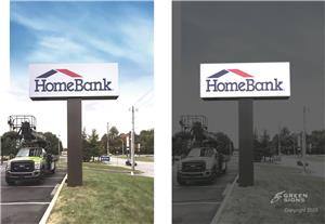 Green Sign Company's designers helped Home Bank in Mooresville IN get a new and improved updated double-faced internally illuminated main ID sign to bring in customers, making this company hard to miss.