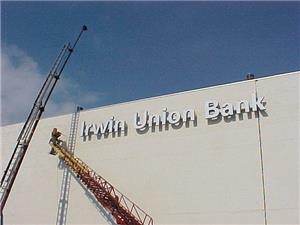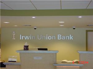 Custom material and color were chosen for each of the multiple locations for Irwin Union Bank interior branding. The dimensional metal letters were secured to the wall with hidden mounting hardware giving the lettering a sleek look.