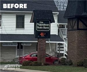 We recently had the pleasure of working with The Napoleon State Bank at their Napoleon Branch on an exciting signage upgrade. The bank wanted to update their existing pylon sign to match the modern look of their other locations.