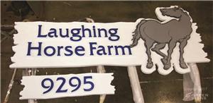 This sign was made from High-Density Urethane, that we sand etched, and painted giving it a creative and dimensional look.