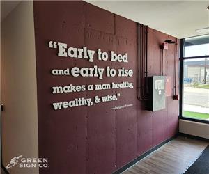 Our friends over at 150 South in Franklin, IN reached out wanting to add some interior branding to the building! Our account rep. met with them to discuss their goals and ideas for the interior branding! All this information was passed on to our design team who used it to create custom design layouts for the 150 South team to review! Once they approved a design, our production team began making the custom graphics and dimensional letters for the project! This project is part of our GSC 100, 200, & 300 Series! After production was complete, our install team took the signs to site and installed them!
