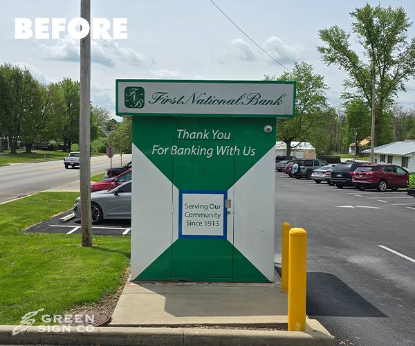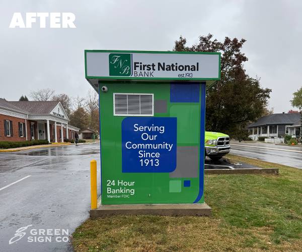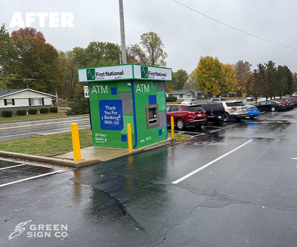 Green Sign Company recently partnered with First National Bank to complete a custom project for their Main Office location in Cloverdale, Indiana. For this project, our team designed, fabricated, and installed a GSC 100 Series ATM Wrap. This wrap was customized to align perfectly with First National Bank’s branding, creating a clean and professional look that enhances visibility and reinforces brand consistency. At Green Sign Company, we take pride in providing financial institutions with high-quality signage solutions that combine functionality and design. Whether it’s an illuminated sign, wayfinding, or a simple branded wrap, our team ensures every detail reflects our client’s brand identity and commitment to their customers. Project Type: GSC 100 Series ATM Wrap Location: Cloverdale, IN Client: First National Bank #BankBranding #FinancialSignage #CustomSigns #GreenSignCompany #IndianaBusiness #FabricationAndInstallation