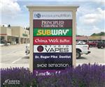 For lots that have multiple different businesses, it can be difficult for travelers to locate the business they are trying to get to. Multi-Tenant signs help ease their frustrations and provide a way for all of the businesses to be located at once with one sign. For this project, the customer had Green Sign Company build a multi-tenant sign that highlighted their biggest tenant in the plaza followed by the rest of the tenants. Signs such as this one are awesome because when one tenant leaves, the customer doesn't have to get a whole new sign. They just need to replace that tenant panel.