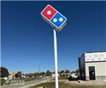 Greensburg Dominos got a face lift! Branding for this location includes a Hi-Rise sign, Channel Letters, & Channel Logos!