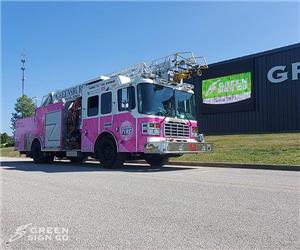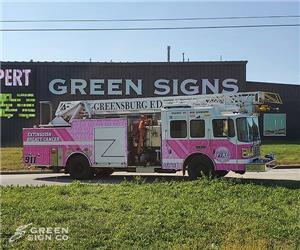 Honored to help spread awareness! We’ve just installed temporary graphics on the Greensburg Fire Truck in support of Breast Cancer Awareness Month. Together, we stand strong for those fighting and those we remember. 💖🚒