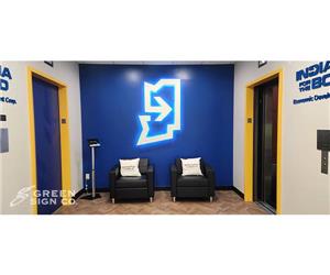 This week, our team traveled to Indy to install this custom Lighted Wall Logo for the Indiana Economic Development Corporation! They had reached out needing a custom interior sign. Our account rep. met with them to discuss their goals and ideas for the new sign. These ideas were passed on to our design team who used them to create custom design layouts for the IEDC team to review. Once they approved a design, our production team began building the sign! This sign is part of our GSC 750 Series Internally Illuminated Channel Letters. After production was complete, our install team took the sign to site and installed it.