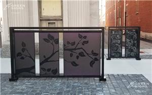 This custom Mesh Panel System is the first of it's kind here at Green Signs Co. These artistic panels are made with perforated aluminum and are powder-coated to ensure that they last. Working with a local artist helped to add a creative touch to this historical area. Customers can upgrade to the GSC 600 series to add internal premium UL RBG LEDs to bring out the unique designs so they can be enjoyed during darker hours.