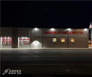 #GreenSignCompany #RushvilleFireDepartment #CustomSignage #HaloLitLetters #LEDSigns #FireDepartmentBranding