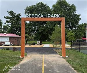 We’re proud to highlight our recently completed project at Rebekah Park right here in Greensburg, Indiana. As part of our GSC 300 Series, our team designed, created, and installed custom branding for the park’s iconic archway.
