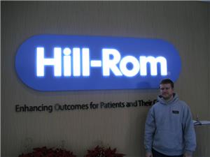 Hill-Rom is a great client that we've helped with their branding across the nation. On this specific project, we added an internally illuminated sign in the entryway of their Admin building and in the main hallway added dimensional, laser cut, acrylic letters showcasing their company values.