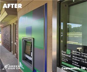 Virtual Teller Machines (VTM) is changing the existing drive-thru banks. Green Sign Company provides a solution for the existing drive-thru teller windows/glass area. The most popular solution is perforated vinyl graphics that can be simple or custom. Other window options include opaque, etched, and decorative patterns.