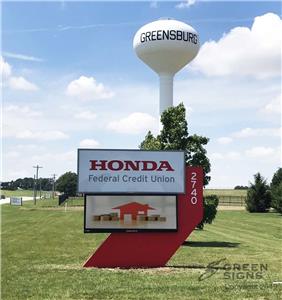 Honda Federal Credit Union got a brand new look for its Main ID Sign. Now, it's hard to miss. With a double-sided internally lit aluminum cabinet sign and a double-sided Electronic Message Center, Honda FCU can be seen and be heard. Their new EMC (Electronic Message Center), will help them communicate with their clients and customers in real-time over broadband wireless internet. #Electronic #MessageCenter #OhioSigns #DigitalSigns #OutdoorProgrammableSigns