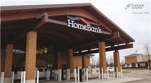 Green Sign Company's designers helped Home Bank in Mooresville IN get a new and improved updated double-faced internally illuminated main ID sign to bring in customers, making this company hard to miss.