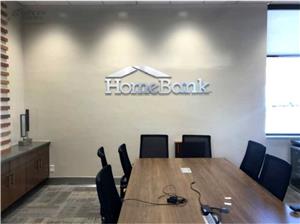 Green Sign Company is grateful to have been able to help Home Bank with projects at many of their locations. For this project, Green Sign Company installed interior dimensional logos in a couple of Home Bank's conference room. These signs were 3mm Brushed Aluminum polymetal. Though it is simple, signs like these add branding throughout a building while also maintaining a uniform look.