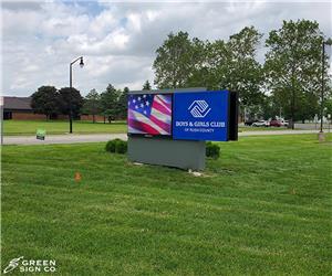 For our friends over in Rushville, your community has a new sign!! The Boys & Girls Club of Rush County reached out and were wanting a new sign for their location. Our Account Rep. for that area met with their team and discussed their goals for the new sign! They were looking for a sign with a fresh design that would also allow them to share messages about the club to their visitors and the community. Those goals were then brought back to our in-house design team to be put in the design options that would be presented to The Boys & Girls Club. Once their team approved the sign design, our production team got to work fabricating this awesome sign! The sign is a member of our GSC 600E Series. This sign series is where our customers will find lighted main ID signs that incorporate an Electronic Message Center! This type of sign is growing in popularity as they are amazing tools for any business. They allow the business to not only identify the business location but also communicate with the community. They can share vital information that some might not otherwise know about. After it was complete, our install team took the sign to location and installed it!