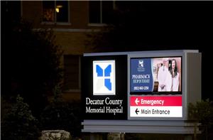 Decatur County Community Hospital in Greensburg keeps its community informed with their 10mm American Company Electronic Message Center. #Medicaldigitalsigns #hospitalsigns