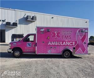This month, Decatur County Memorial Hospital EMS partnered with us to create a custom temporary ambulance wrap in support of Breast Cancer Awareness.