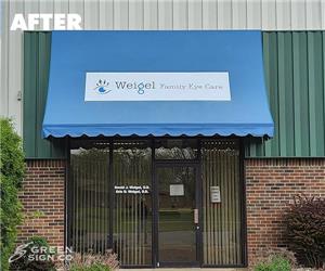 We recently had the pleasure of working with Weigel Family Eye Care in Greensburg, Indiana, to give their storefront a simple yet impactful refresh. As part of our GSC 100 Series – Custom Vinyl Projects, this job focused on revitalizing their existing awning.