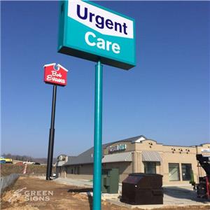 If you're one of our friends in the Martinsville area, you'll want to check this one out!! The GSC team traveled to Martinsville recently to install a few different types of signs for a new Fast Pace Health Urgent Care location. There are two different GSC 750 Series Channel Letter styles, a GSC 600E Series Pylon with an electronic message center, and GSC 100 Series window and door graphics! Both the Channel Letters and the Pylon are internally illuminated! With the electronic message center, Fast Pace Health will be able to communicate with their patients message like "Flu Shots", clinic hours, and so much more!!
