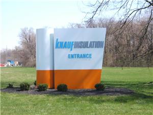 Green Signs designed and implemented Knauf's corporate logo into their main entrance sign. The custom designed shapes and size fit into the surrounding environment perfectly.