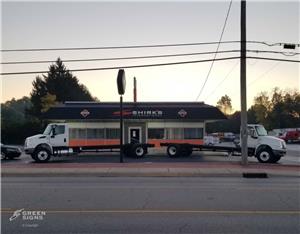 Green Sign Company did an entire facade upgrade in 2020 and it turned out amazing! The goal when any business changes the exterior look of their business is to capture the attention of those that may have not known they were there, recapture the attention of customers, and intrigue people that aren't current customers. This project consisted of a new coat of paint, Animated LED Channel Letters, and a HUGE Electronic Message Center! Electronic Message Centers are great tools to use to communicate with those that are passing by your business. You can create custom messages to share with the community such as sales your business might be having, advertisements, holidays, company birthdays and anniversaries, and so much more.