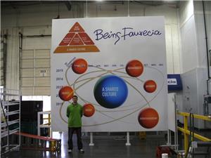 We have completed many projects for Faurecia over the years, but our favorite is the Internally Illuminated Wall cabinet that we installed. It has a simple sleek design that can be seen from a vast distance.