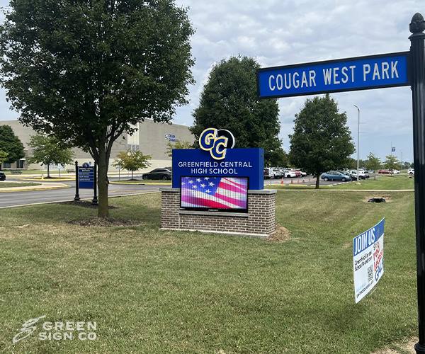 We recently partnered with Greenfield Central High School to design, fabricate, and install a custom GSC 600E Series Main ID with an Electronic Message Center (EMC). This new Main ID not only enhances the school’s campus presence but also provides a modern communication tool for sharing announcements, events, and updates with students, staff, and the community. The combination of a durable custom structure and a high-quality EMC ensures both visibility and functionality for years to come.