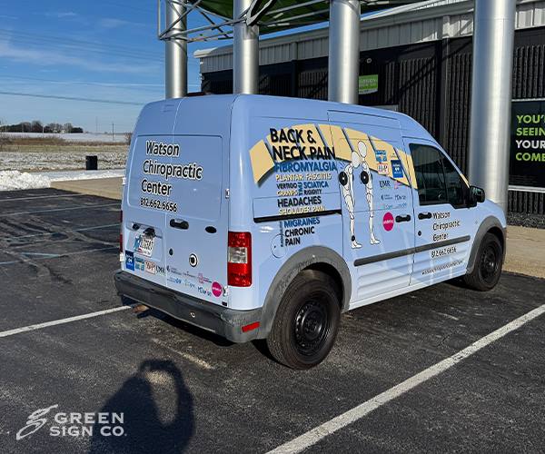 Green Sign Company recently partnered with Watson Chiropractic to help elevate their brand visibility with a custom full van wrap. As a growing local business, Watson Chiropractic wanted a professional, eye-catching design that would help them stand out in the community and showcase their services while on the road. Our team designed, created, and installed a GSC 100 Series full vehicle wrap, transforming their commercial van into a vibrant, mobile advertising tool. The custom graphics were tailored to reflect their branding, ensuring a clean, modern look that communicates professionalism and builds brand recognition. Vehicle wraps are one of the most cost-effective and impactful forms of marketing for businesses of all sizes. With a properly designed wrap, companies can take advantage of continuous exposure — wherever the vehicle travels. This project highlights our commitment to providing high-quality signage solutions, including vehicle graphics, fleet wraps, and branded commercial signage, that help our customers grow their presence both locally and regionally. If your business is interested in a custom vehicle wrap, fleet branding, or other graphic signage solutions, our team is here to help from design through installation. Contact us today to get started!