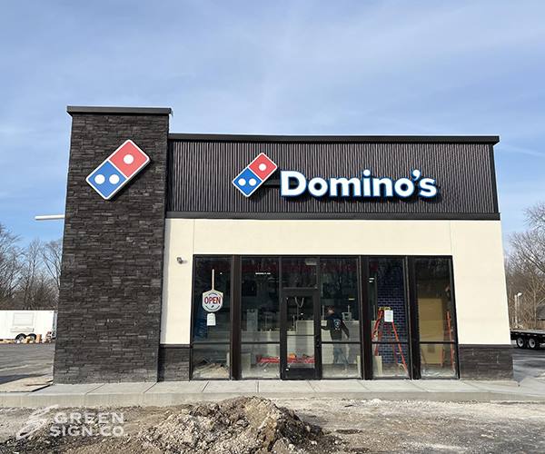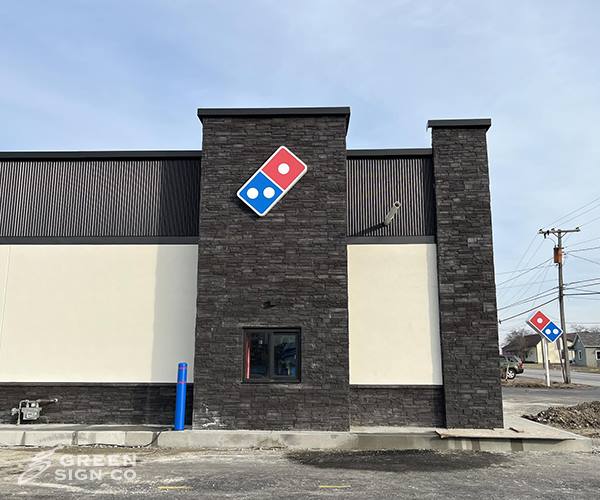 We recently completed a signage project for Domino’s in Elwood, Indiana, providing a full-service solution from start to finish. Our team designed, fabricated, and installed custom GSC 750 Series building signs to enhance the restaurant’s visibility and reinforce the Domino’s brand at this location. The GSC 750 Series is known for its bold appearance, durability, and ability to make a strong visual impact—making it a great fit for high-traffic commercial environments like restaurants. These new building signs help ensure the Elwood Domino’s location stands out and is easily recognizable to customers both day and night. We’re proud to support local businesses with high-quality, custom signage solutions that combine eye-catching design with long-lasting performance. Looking to upgrade your building signage? Our team is ready to help bring your brand to life.