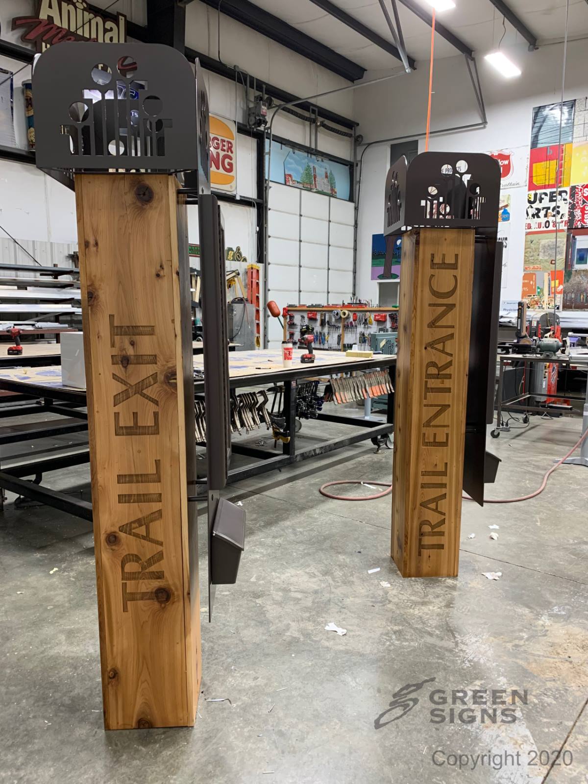 Our designers here at Green Signs got to show their amazing craftsmanship at Margaret Mary Health's new walking trails in Batesville Indiana. These GSC 400 custom series signs are four sided architectural informational signs with routered out letters and logos. They have a custom made information board and first aid kit built into the front of each. These custom signs blend in perfectly with the outdoor nature walking trails with their rustic look.