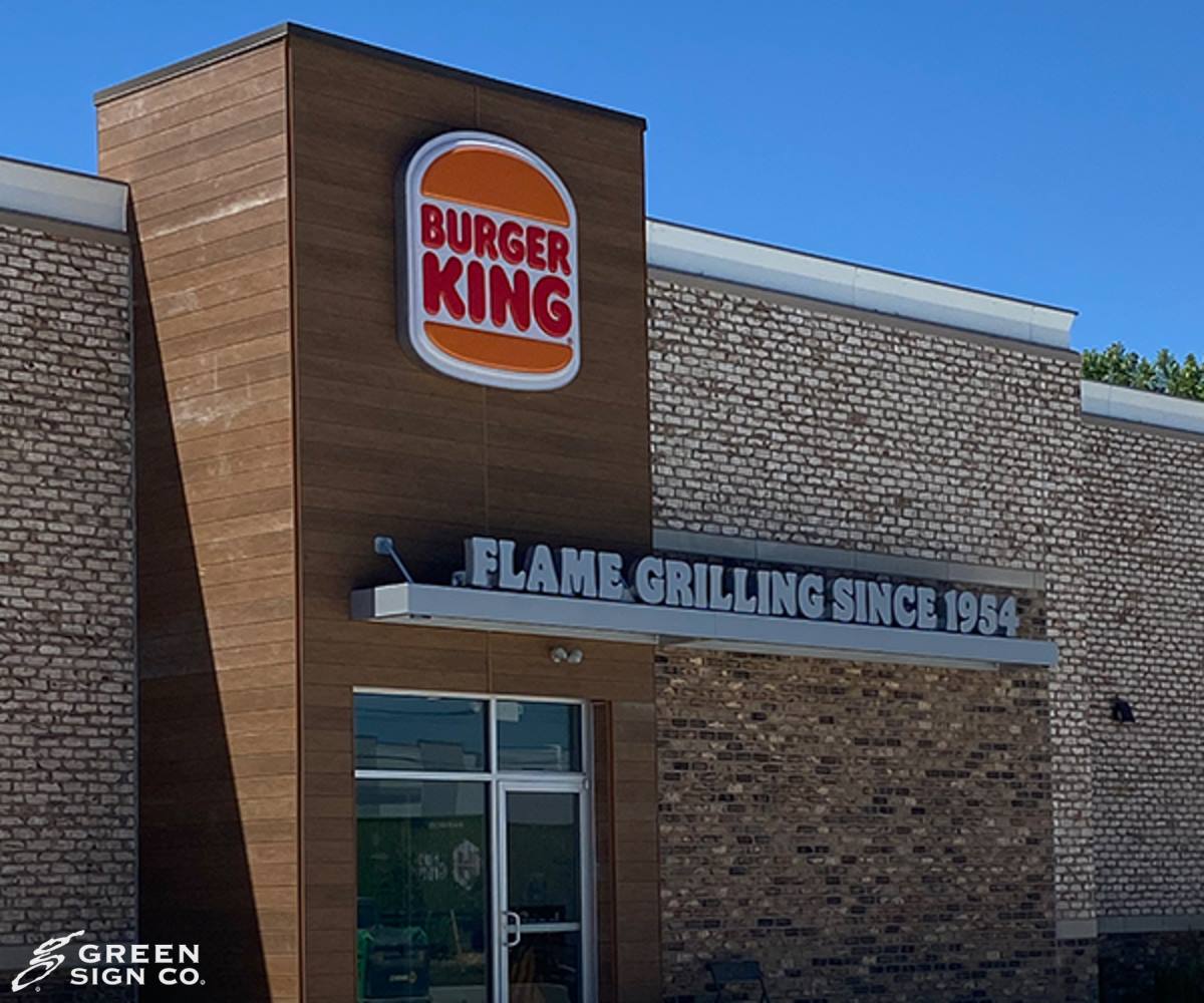 One of our install crews traveled to Greenwood, Indiana to install this collection of signs for Burger King! Installed were an internally illuminated pylon/hi rise sign (GSC 600 Series), three internally illuminated wall signs (GSC 600 Series), a set of channel letters(GSC 750 Series), and the drive thru menu boards and clearance bars! There are a lot of moving parts to constructing and preparing a new restaurant and we're happy to be a part of that process!
