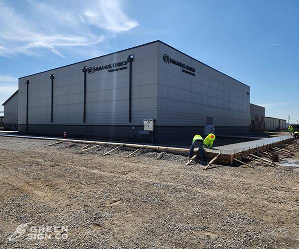 Recently, our team completed this project for Emmanuel Church in Seymour, IN! The Emmanuel Church team reached out needing exterior signs for their new location! Our account rep. for their area met with them to discuss their goals and ideas for the new signs! All of this information was brought back to our design team who used it to create custom design layouts for the Emmanuel Church team to review. Once they approved a design, our production team began making the new signs! These signs are part of our GSC 300 Series - Custom Dimensional Signs! After production was complete, our install team took the signs to site and installed them!