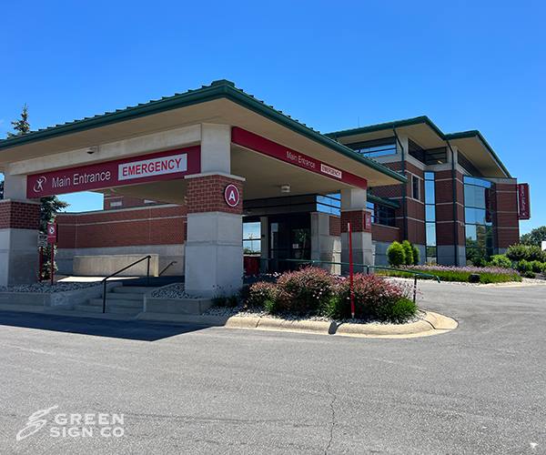 Our friends over at Rush Memorial Hospital: Indiana reached out wanting to add to their Main Entrance canopy! Our account rep. for their location met with them on location to discuss their goals and ideas for the new sign! All this information was passed on to our design team who used it to create custom design layouts for the RMH team to review! Once they approved a design, our production team began making the new sign! This sign is lighted and part of our GSC 600 Series! After production was complete, our install team took the signs to site and installed them. Congratulations Rush Memorial Hospital on your new Canopy Sign! Thank you for your partnership!!